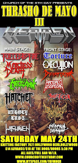 Attention all Californians and west coast thrashers! MUNICIPAL WASTE have set up a "surprise" show 7PM this Friday, May 9th at Relax Bar in Los Angeles, CA. This is a special one-off show and will be their only west coast gig until they come back in July with the legendary AT THE GATES.
